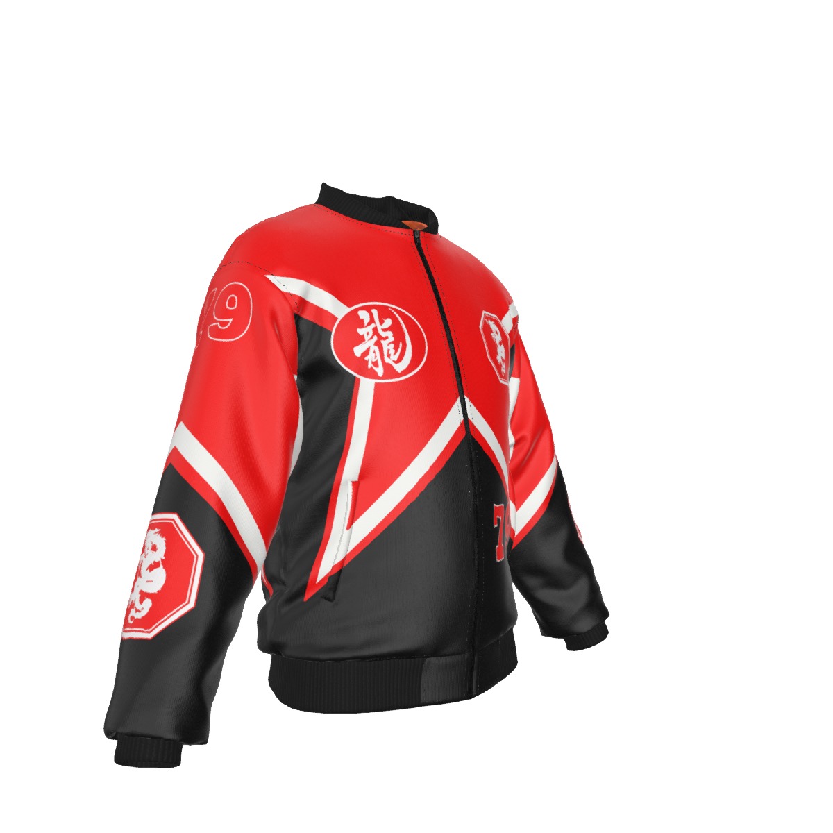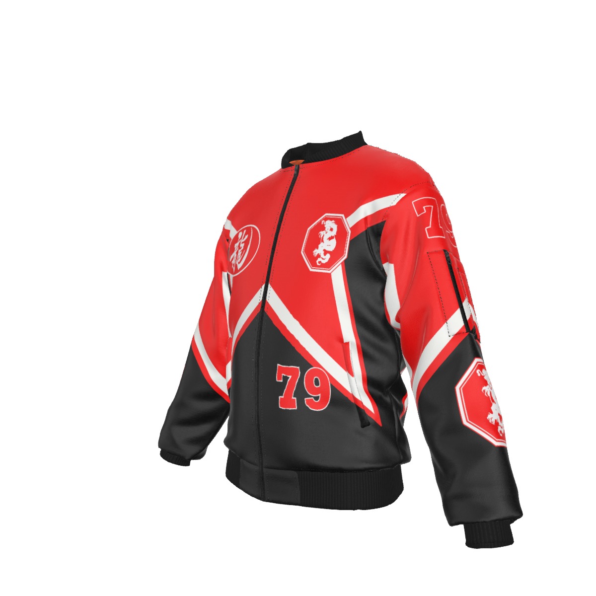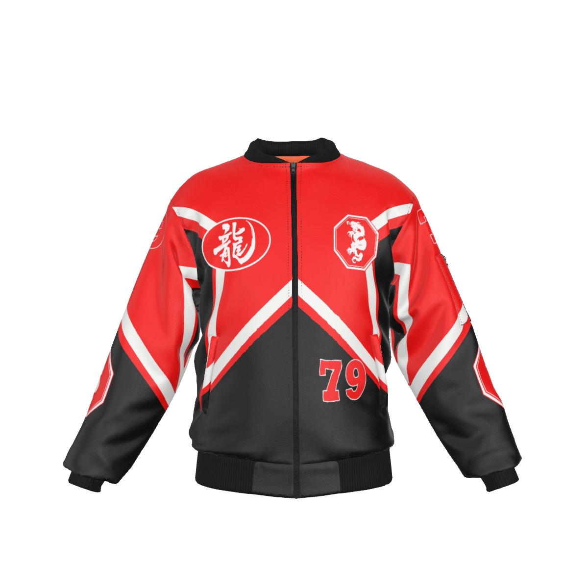 • Black rib-knit,black zipper, pocket with black zipper on left sleeve